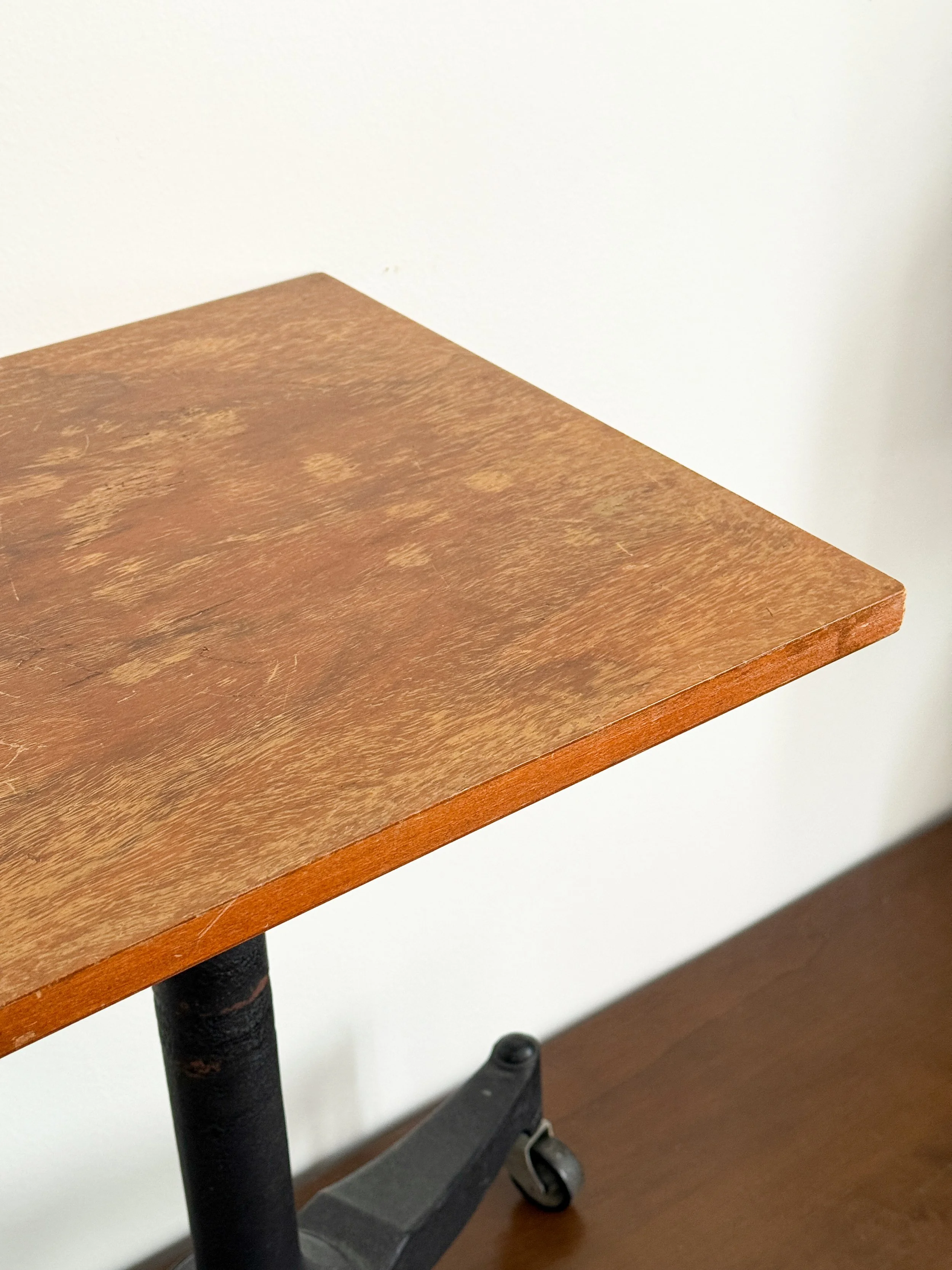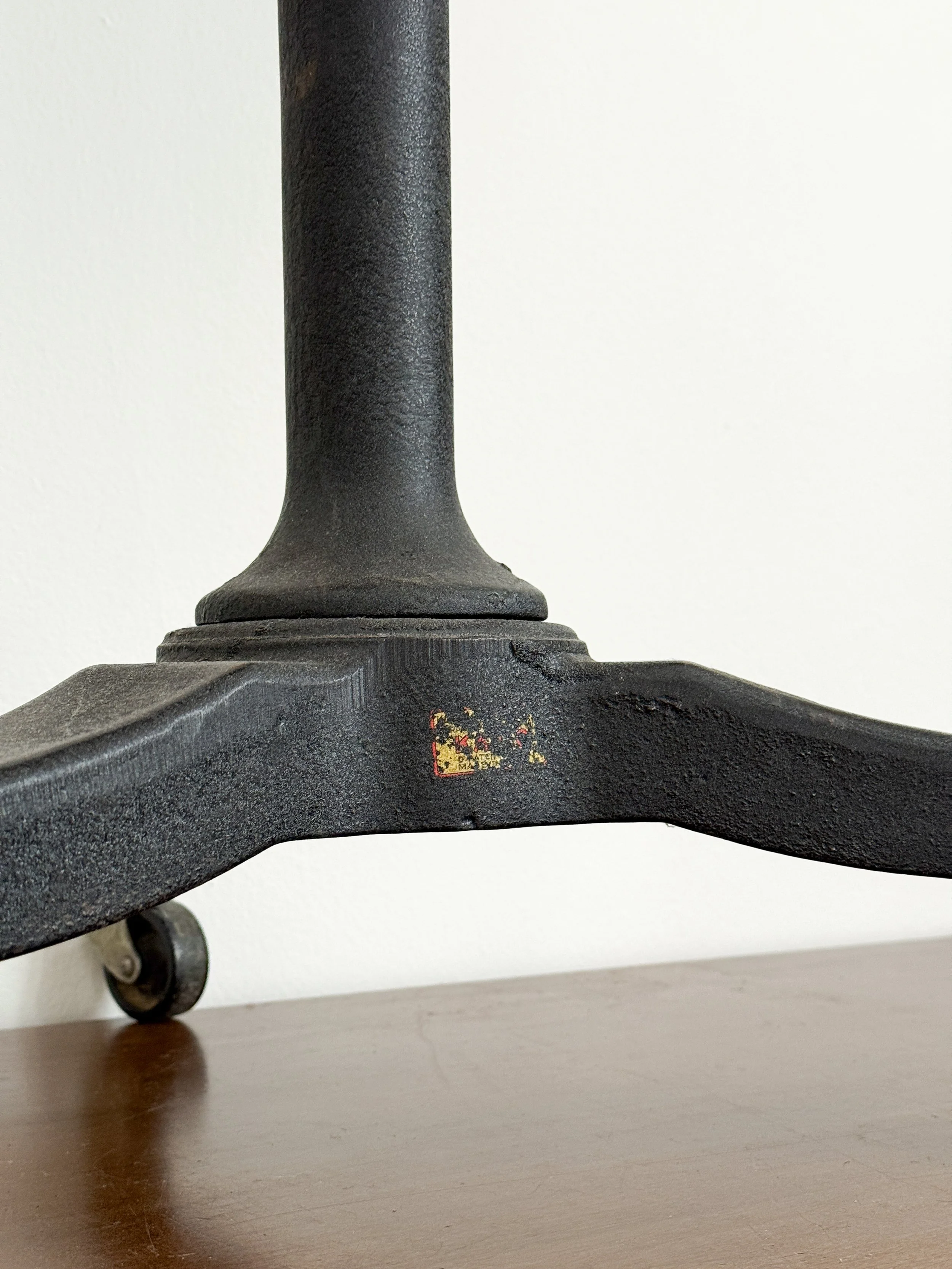 Condition as shown, Nice patina/loss of finish on top, wrought iron base in excellent condition, solid wood top. Age appropriate wear.